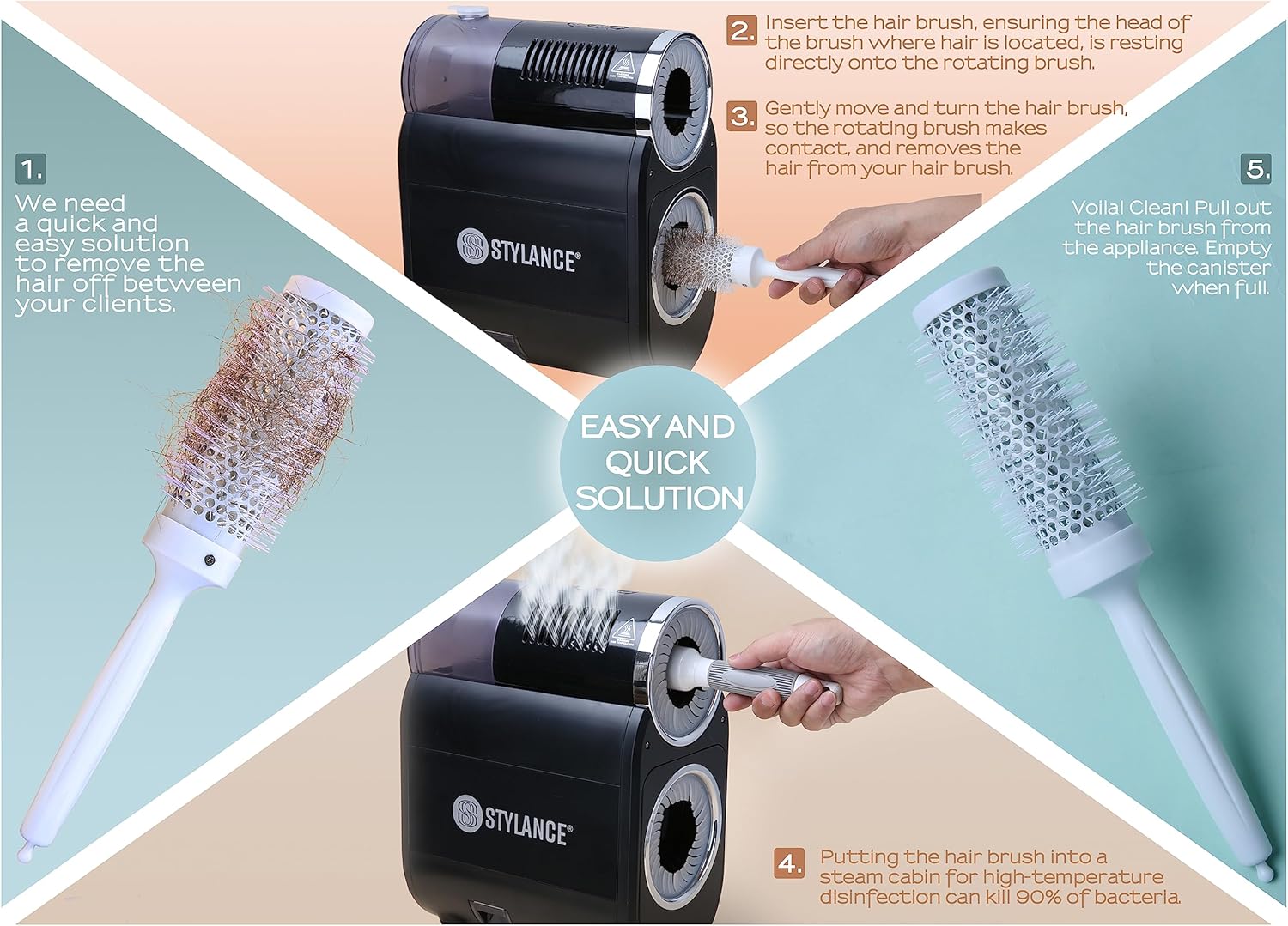 STYLANCE Automatic Hair Brush Cleaner with Steam Sanitizing – Professional Electric Brush Cleaning Tool