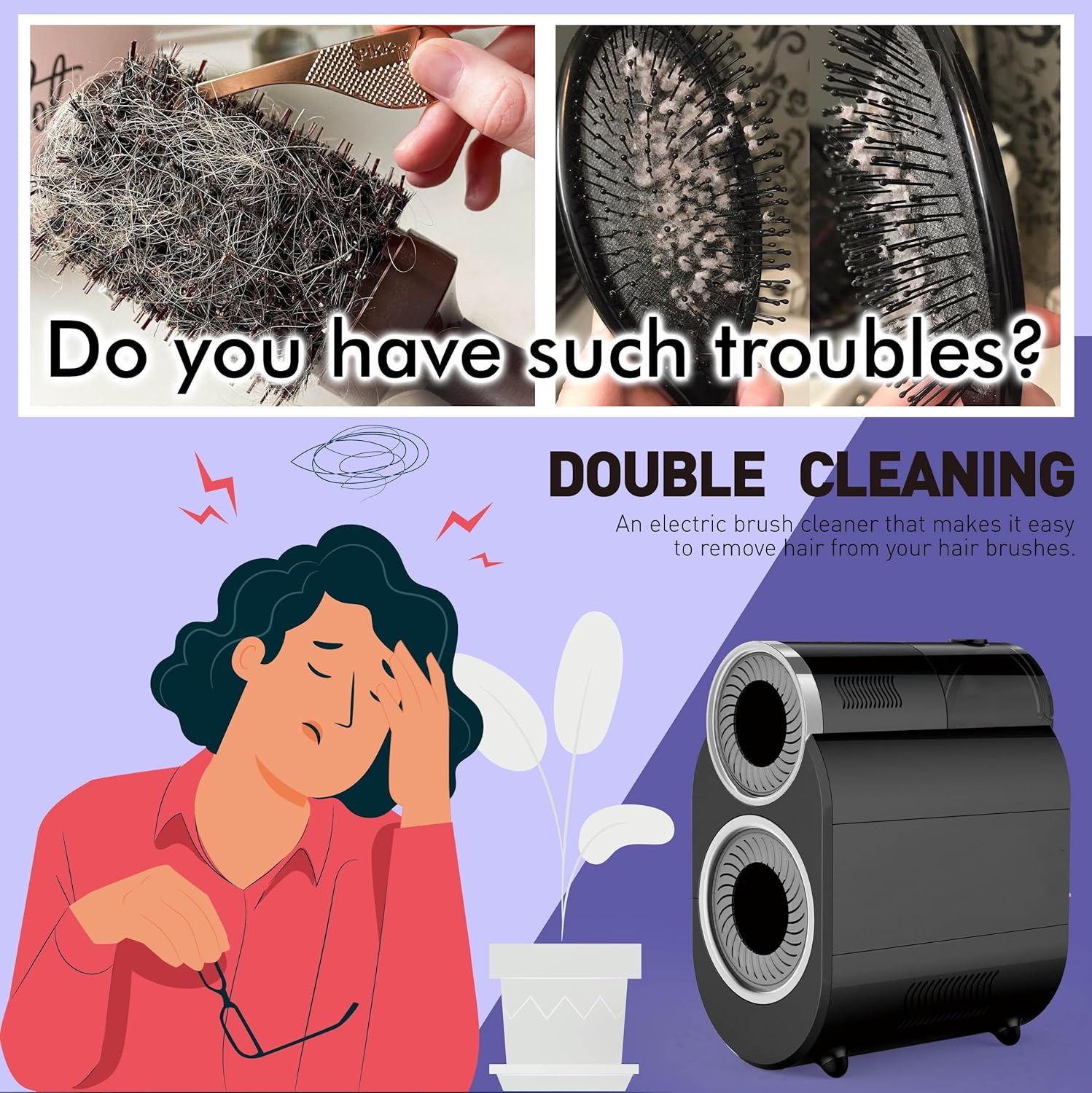 Dual Cleaning System – Features a lower-level automatic cleaner to remove hair and debris, plus an upper-level steam system for deep sanitizing.
